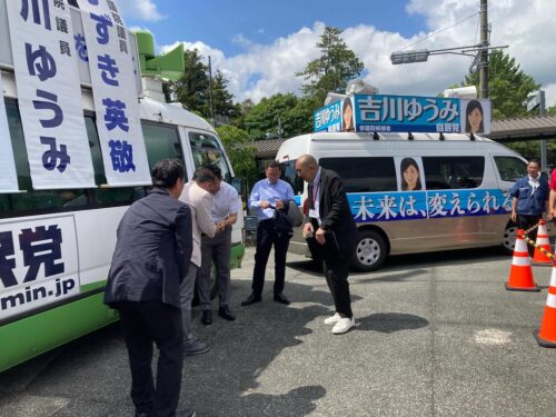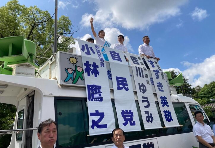 応援弁士には地元の鈴木英敬代議士、そして遠路から小林鷹之代議士も駆けつけて頂き、大勢の皆さんに支援を訴えてました。