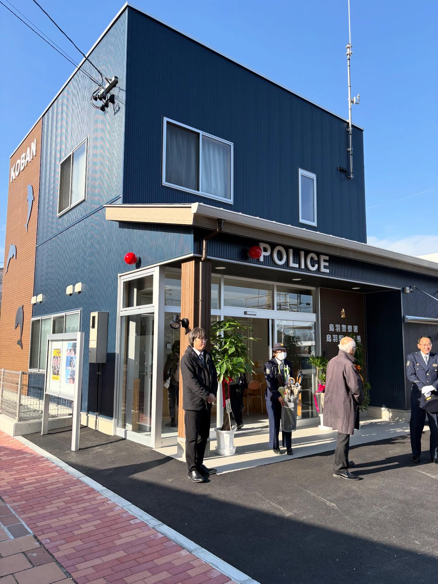 2025.12.23 『鳥羽駅前交番』が新築移転 JR鳥羽駅の隣に『鳥羽駅前交番』が新築移転しました。 壁面にはイルカも表現されており、モダンで、セキュリティー対策もしっかりされている素晴らしい建物です。 隣のサザエストリートとコラボして本当にいい感じですわ。 これまで暗いと言われていたJR鳥羽駅側の通りも、明るくなって人通りも増えて欲しいと期待しています。 Tweet 伊勢市上下水道部庁舎完成前の記事 鈴木英敬候補 3期目の当選次の記事